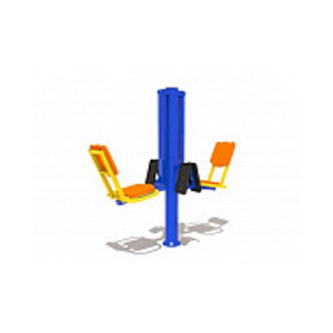 Назначение: Способствует укреплению мышц ног и коленных суставов. Тренажер расчитан на 2-х пользователей. Несущая стойка тренажера выполнена из металлической трубы сечением Ø 110 мм, бетонируется в землю на 0,6м . Все шарнирные узлы имеют подшипники скольжения закрытого типа. Опоры для ног и сидение изготовлены из ударопрочного и морозостойкого пластика. Все жесткие соединения выполнены при помощи электросварки. Металлические элементы окрашены порошковыми красками. Крепежные элементы и места срезов труб защищены пластиковыми заглушками.