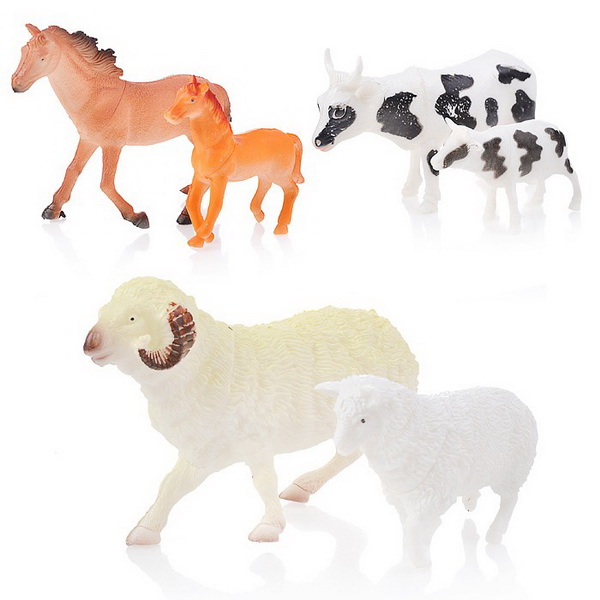 В набор входят 3 вида домашних животных в паре с детёнышами.