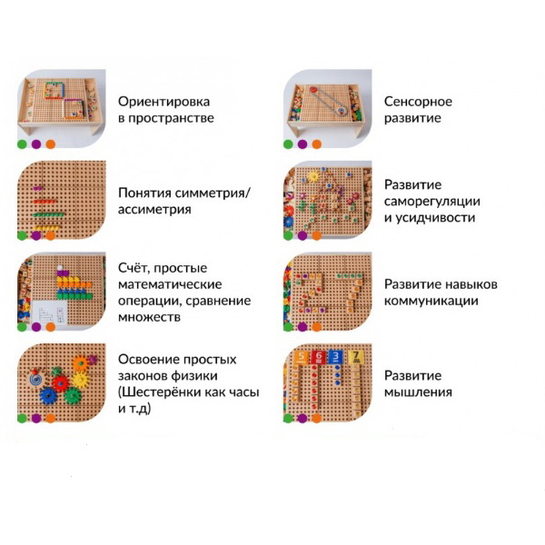 Набор предназначен для индивидуальной и групповой работы с детьми в ДОУ и развивающих центрах с 3х лет, развивает у малыша крупную и мелкую моторику, когнитивные и познавательные способности, интерес к творческой деятельности. Набор сопровождается методическими рекомендациями преподавателям.