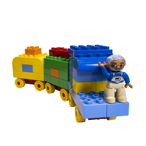 - Сделают своими руками транспорт из блоков с колёсами, вольеры из заборчиков для зоопарка;