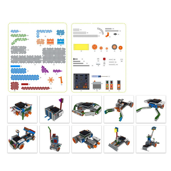 Конструктор Huna MRT (My Robot Time) создан для детей, увлекающихся робототехникой в новой версии этого года. Подходит для младших школьников (1-4 класс). Из деталей этого конструктора вы вместе с ребенком соберете множество роботов: рыцаря, бойца, футболиста, сумоиста, лыжника и т.д. Кроме этого, можно сконструировать поезд, танк, гоночную машинку, игру «Попади в цель» и многое другое.