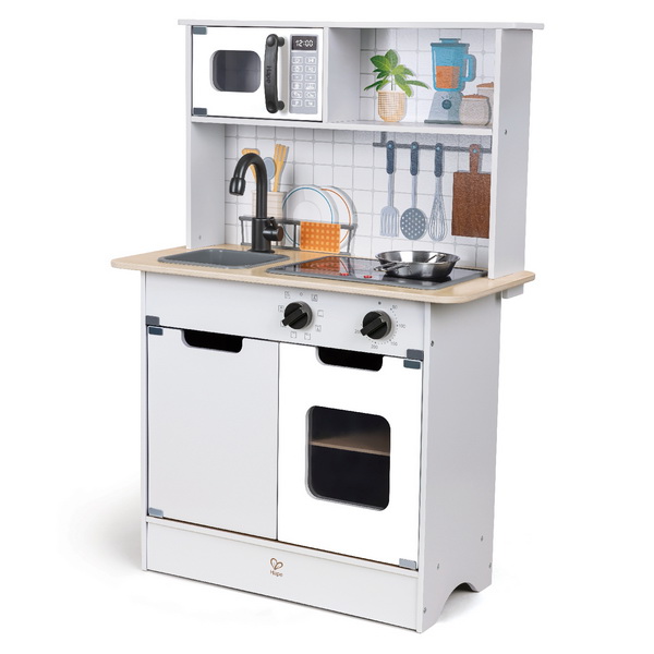 На полках за закрытыми дверцами удобно хранить посудку, поварскую утварь и любые другие игрушки и принадлежности. Маленькая хозяюшка будет с удовольствием готовить вкусную "еду", возиться с кукольными обедами и устраивать званые ужины для мишек и куколок.