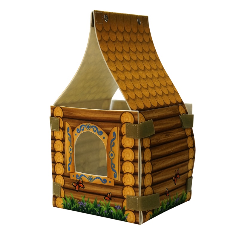 Мягкий разборный домик для хранения театральных игрушек, который можно использовать и в качестве декорации для постановок.
